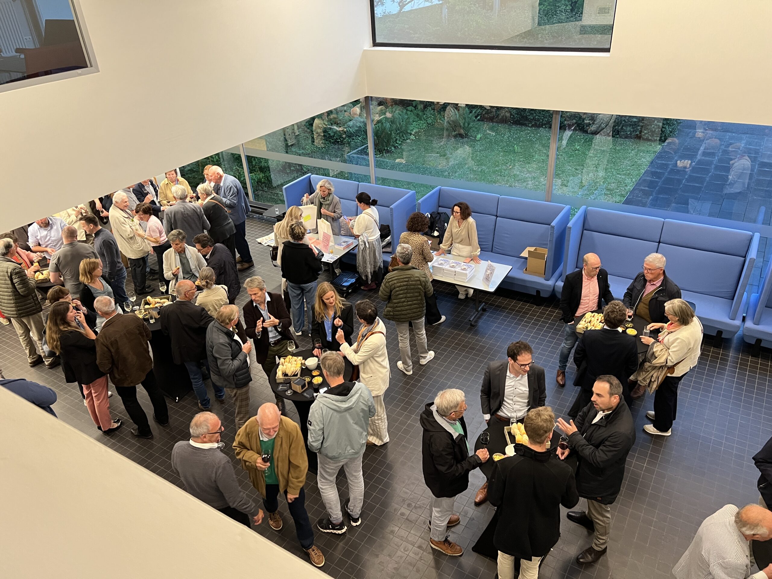 De boeiende gesprekken gingen gewoon verder tijdens de drink, waar ideeën en ervaringen volop gedeeld werden.