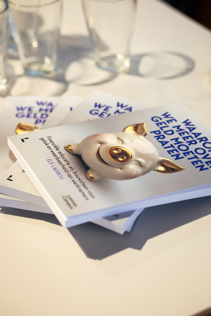 Een hele fijne en gezellige setting om een gesprek te voeren dat we vaker moeten doen: namelijk over geldzaken. Mijn boekvoorstelling werd gevolgd door een inspirerend panelgesprek rond financieel welzijn, samen met Frank Vander Sijpe, Director HR Trends & insights bij Securex, Soukaina bouddount, CEO van Compinsight, een toonaangevend bedrijf op het vlak van verloning en arbeidsvoorwaarden en Laurens Brams, Head of People bij Lifeworx, (Human minds, ideeds, Finsiders, The Corner Office, Durawise. . We spraken over de impact van financiële stress op welzijn, productiviteit en samenwerking – en vooral over hoe organisaties hier proactief mee aan de slag kunnen. (De pagina met de take aways kunnen ook hier bij ! zie passage hieronder
