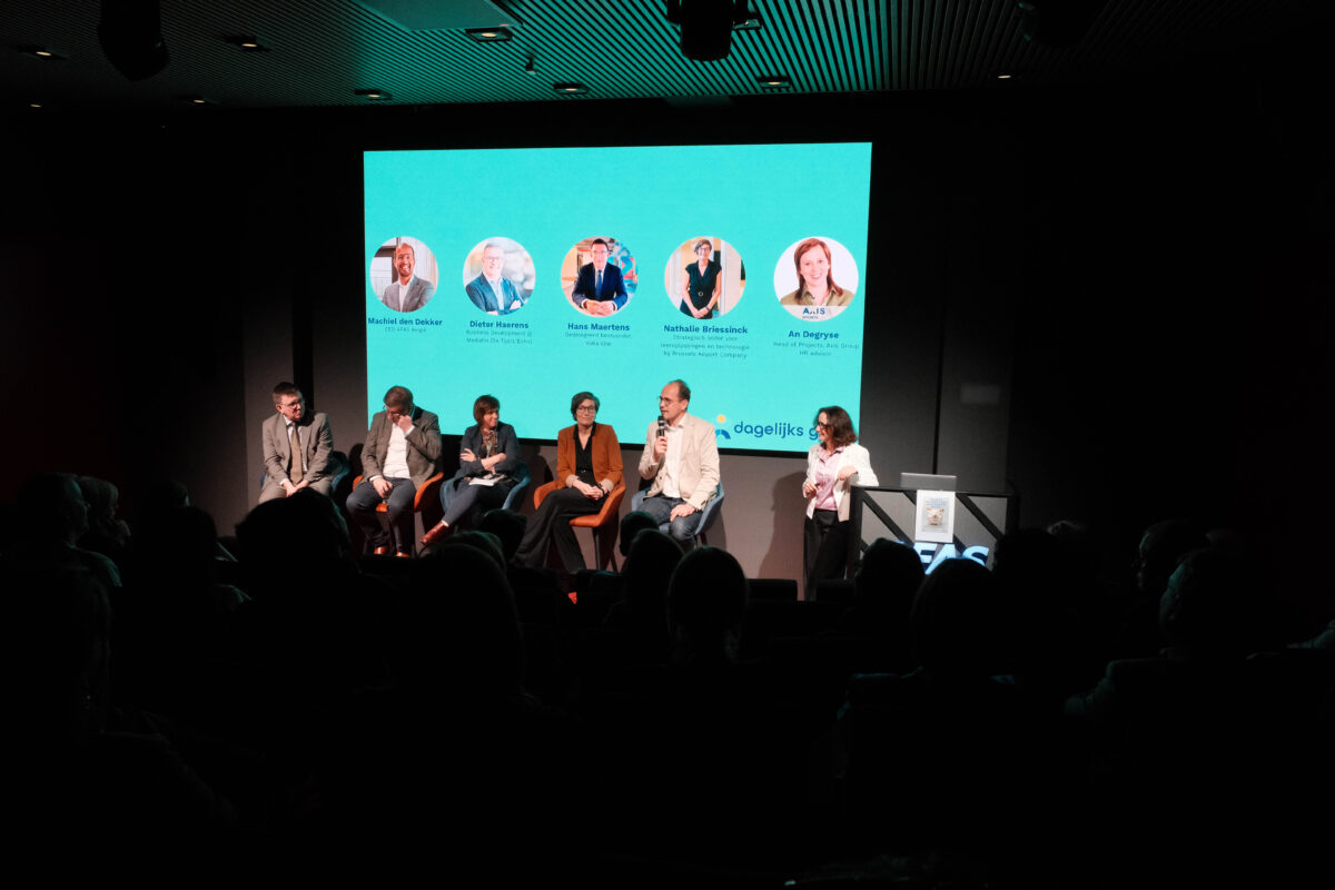 Daarna volgde een rijk panelgesprek met uiteenlopende perspectieven: Kasper Peters, Chief Strategy Officer (CSO) en Financial Services Industry (FSI) Leader bij Deloitte België, en initiatiefnemer van de financiële gezondheidstest. Prof. dr. Bert Schreurs, hoogleraar Human Resource Management aan de Vrije Universiteit Brussel (VUB), die zijn inzichten deelde over werkstress en financieel welzijn op de werkplek. An Degryse, Head of Projects bij Axis Group, die ervaringen bracht uit het traject dat hun medewerkers samen met Dagelijks Geld doorliepen. Nathalie Briessinck, strategisch leider voor leeroplossingen en technologie bij Brussels Airport Company, die tips gaf over innovatieve leeroplossingen en hoe organisaties mensen kunnen laten groeien en bloeien.