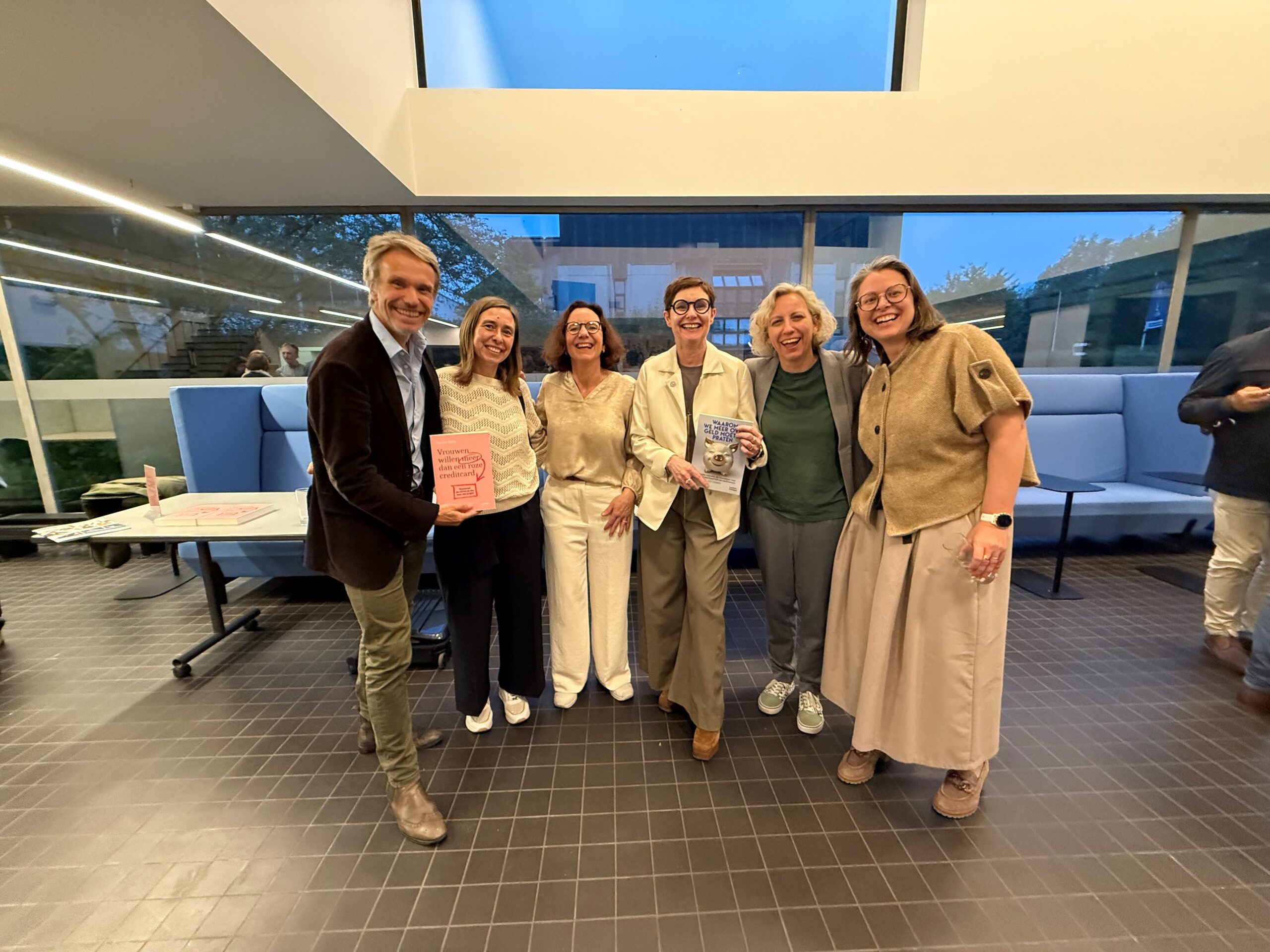 Na de boekvoorstellingen volgde een rijk panelgesprek dat de thematiek vanuit diverse perspectieven belichtte. Inge Ampe, CEO van Bank B, bracht de blik van de financiële sector en toonde hoe banken mee het verschil kunnen maken met meer toegankelijke en gendersensitieve communicatie. Prof. dr. Marijke Verbruggen (KU Leuven, Work & Organisation Studies) ging dieper in op de impact van loopbanen en werk-privébalans op financiële gezondheid. Prof. dr. Lode Godderis, CEO van IDEWE en hoogleraar arbeidsgeneeskunde aan de KU Leuven, legde uit hoe financiële stress nauw verbonden is met welzijn en preventie op de werkvloer. En uiteraard vulde Ilse De Witte haar verhaal verder aan met inzichten uit haar boek, over hoe vrouwen sterker in hun financiële schoenen kunnen staan.